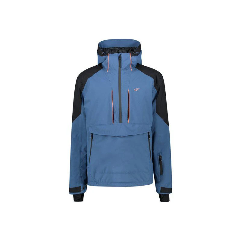 Jakken har en høj krave og justerbar hætte, der giver ekstra beskyttelse mod vinden og kulden. Frontlynlåsen er vandafvisende og har en beskyttelsesklap, der holder vinden ude. Der er også en lomme på brystet med lynlås til opbevaring af småting. Anorakken har desuden justerbare funktioner og et snoretræk i bunden, der gør det muligt at tilpasse pasformen.